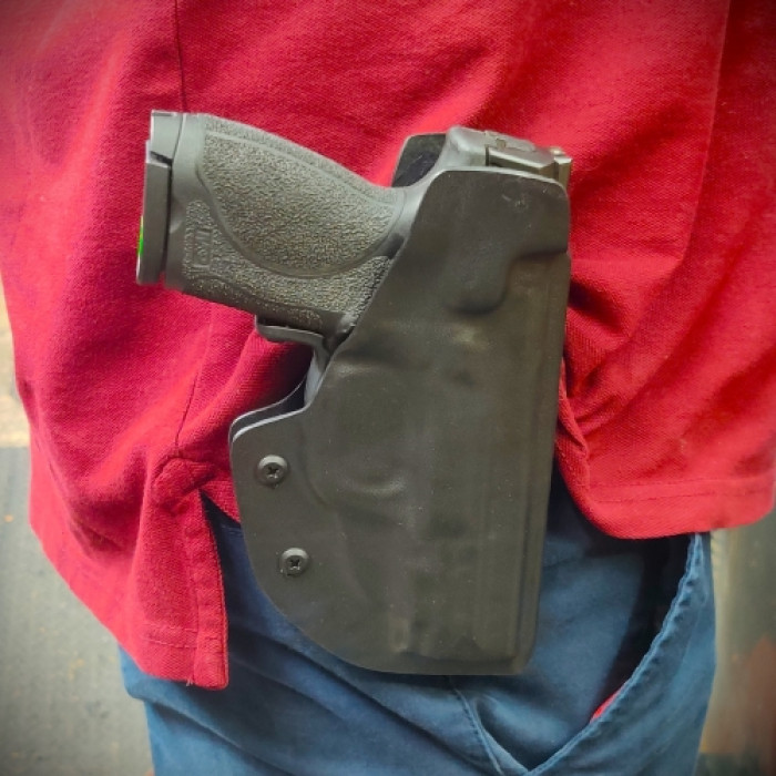 | Optics, Sights, & Extended Barrels | This holster can be custom made for any slide mounted optic (RMR). It can also be made to fit any size or style sights including suppressor height sights. Extended & threaded barrels can also be added to this holster. |
