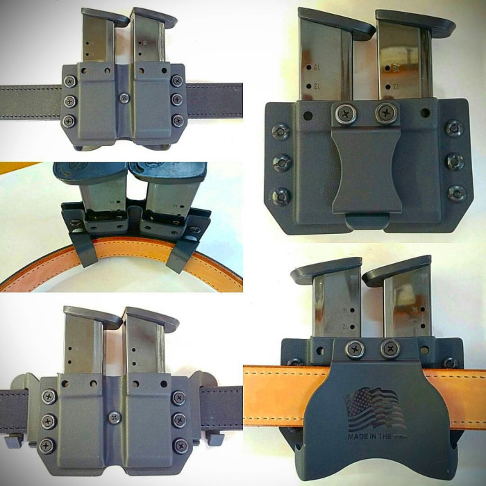 This double magazine holster can be worn either IWB or OWB. It comes with belt slots for OWB carry a..